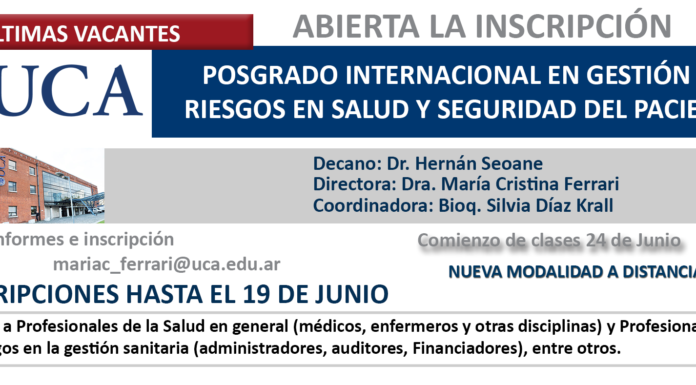 CIERRE DE INSCRIPCION VIERNES 19 DE JUNIO – POSGRADO INTERNACIONAL EN GESTIÓN DE RIESGOS EN SALUD Y SEGURIDAD DEL PACIENTE