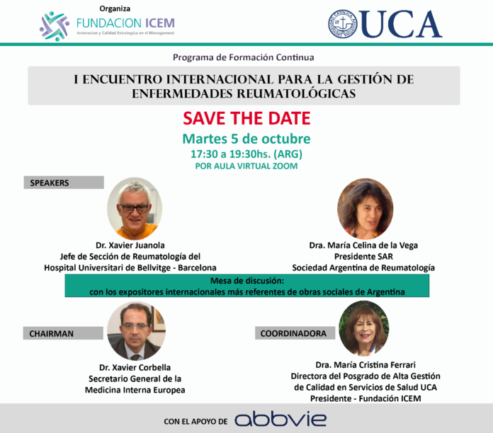 En dicho simposio los disertantes serán: jueves 21 y 28 de octubre el Dr. Xavier Corbella (Secretario General de la Medicina Interna Europea), el jueves 21 de octubre, lo acompañará la Dra. Gemma Craywinckel (Directora del CatSalut) y el jueves 28 de octubre estará el Dr. Josep María Argimon (Conseller de Salud de Catalunya).