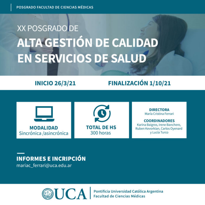 ABIERTA LA INSCRIPCIÓN – UCA – XX POSGRADO DE ALTA GESTIÓN DE CALIDAD EN SERVICIOS DE SALUD