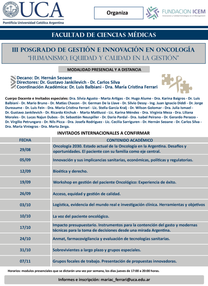 Dicha jornada será el día viernes 9 de agosto, de 8.30 a 16.00 hs., en el Auditorio Monseñor Derisi, del Edificio Santo Tomás Moro (Subsuelo), de la Pontificia Universidad Católica Argentina, ubicada en Av. Alicia Moreau de Justo 1400, Puerto Madero.
