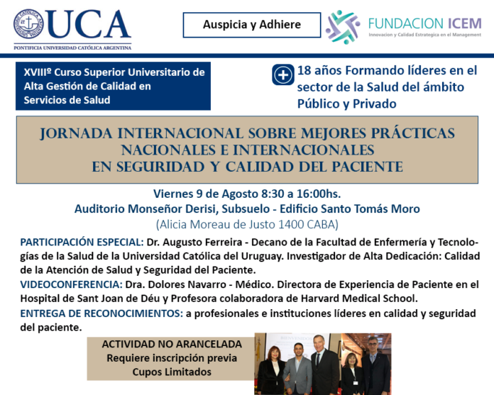 Los invitamos a participar en la JORNADA INTERNACIONAL SOBRE MEJORES PRÁCTICAS NACIONALES E INTERNACIONALES EN SEGURIDAD Y CALIDAD DEL PACIENTE que se realizará en el marco del XVIII Posgrado de Alta Gestión de Calidad en Servicios de Salud: “Gestionar la innovación sostenible, desde una mirada humana.”