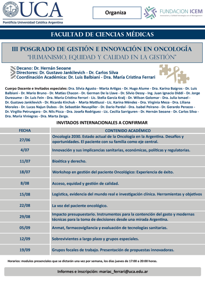 III POSGRADO DE GESTIÓN E INNOVACIÓN EN ONCOLOGÍA – UCA
